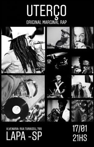 Nesta sexta-feira, 17 de janeiro, pontualmente às 21hs, o Alvenaria Espaço Cultural Colaborativo recebe o rapper Uterço, com show completo do Original Marginal RAP. A atração que integra a programação do local pela primeira vez, mostra faixas especialmente produzidas para ativar uma relação olho no olho com o público – somente ao VIVO. Todos são bem-vindos e o ingresso é consciente – pague quanto puder. Na ocasião, Uterço apresenta oficialmente seus novos companheiros de palco Sandro Bueno (percussão) e Maurício Mith (trompete), que ao lado do DJ Kiko Maestro chegam dando corpo a sonoridade musical que acompanha as rimas ácidas e coesas do disco.